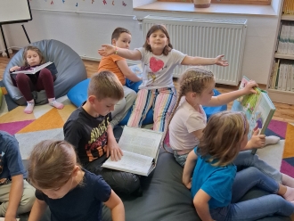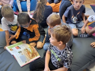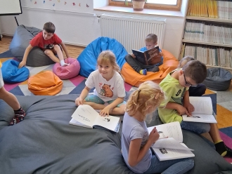 V rámci nově zrekonstruované dětské části školní knihovny pořádám besedy s knihou pro třídy I. stupně. Při besedách se děti seznámí s tím, co je školní knihovna, jak funguje, kde se nachází a kdy si mohou půjčovat knihy. Proběhne také registrace dětí, které mají zájem o půjčování knih. Během besedy si s dětmi povídám o čtení, o oblíbených knihách, ale i tom, co je to knihobudka a jak funguje nebo co je to bibliobox a kde ho najdeme. Říkáme si také, jak v knihovně knihy hledáme, ukazujeme si, jak se knihy zařazují. Děti si mohou prohlédnout knihovnu a prohlížet si knihy, které je zajímají. S paní učitelkou společně vybereme společnou četbu do tříd. Velmi oblíbená je Babička Drsňačka od Davida Walliamse nebo Harry Potter od J. K. Rowlingové, ale také knihy českých spisovatelek- Petry Braunové, Zuzany Pospíšilové, Daniely Krolupperové či Lenky Rožnovské. Děti mají rády knihy o Medovníčkovi. Nově mám v knihovně tituly jako Tramvaj plná strašidel, Prašina, Ema a kouzelná kniha, Karel IV. Slavný český král, České dějiny očima psa, Karlík a továrna na čokoládu, Strašidelný dům, Harry Potter a kámen mudrců, Vlkovi tě nedám! nebo Johana s dlouhýma nohama . Všechny tyto knihy jsou v sadě a mohou být ve třídě využity jako mimočítanková četba nebo k dílnám čtení. Od října bude v rámci školní družiny a školního klubu probíhat kroužek Čtenářská dílna a Čtenářská dílna pro prvňáčky.