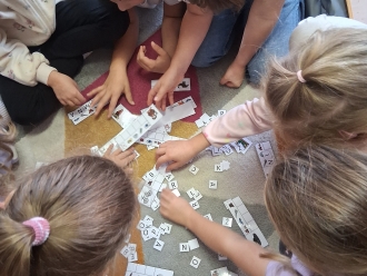 V říjnu se rozběhl čtenářský kroužek pro prvňáčky, který je zaměřen na předčítání, práci s knihou, obrázkové čtení, opakování písmenek a čtenářské strategie, které pomohou dětem zvládnout techniku čtení na samém začátku. Společně opakujeme písmenka, hrajeme si s nimi, zkoušíme vymýšlet slova začínající na A, L, M, E, S. Dětem předčítám z knihy od Zuzany posíšilové, která pracuje s porozuměním textu. Děti pozorně poslouchají a odpovídají na jednoduché otázky. Také si čteme tematické pohádky k jednotlivým písmenkům i logopedické pohádky. Děti si vyrobily čtenářské portfolio, desky, do kterých si budou zakládat jednotlivé pracovní listy a na konci školního roku si je odnesou domů.