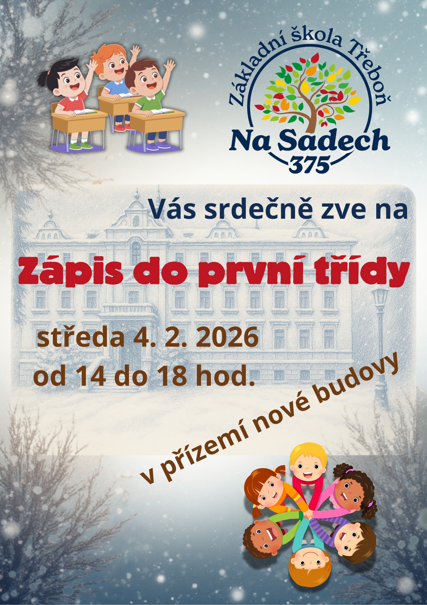 Zápis proběhne ve středu 4. února 2026 od 14 do 18 hodin v přízemí nové budovy školy.