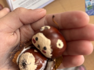 Na podzim jsme vyráběli zvířátka z kaštanů.