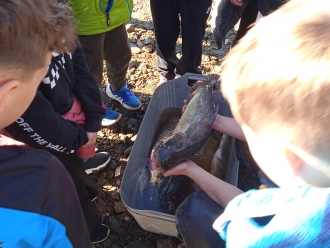V úterý 4.11. jsme v rámci projektové výuky navštívili výlov našeho rybníka Svět, kde se nás ujala Ing. Váňová. Děti získaly při komentované prohlídce spoustu zajímavých informací nejen o rybníku a jeho hrázi, o chovu ryb, ale i o technice používané při výlovu. Tato akce se nám líbila. ![]()