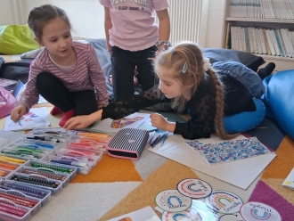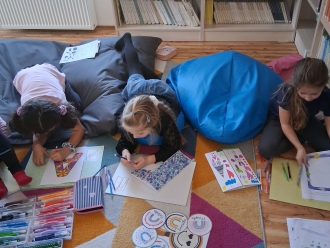 Čtenářská dílna je zaměřena na rozvoj čtenářských dovedností a čtenářských strategií. Prvňáčci se seznamují s písmenky, začínnají číst první slabiky, první slova. Je úžasné sledovat jejich pokroky. Společně si na kroužku opakujeme písmenka, která již děti znají. Čtu dětem pohádky o písmenkách, které je moc baví. Čtu dětem také různé příběhy a poté děti odpovídají na otázky. Tím podporujeme čtení s porozuměním, které je pro děti velice důležité a je nedílnou součástí každého dne ve škole. Hrajeme si s obrázky, kreslíme, vybarvujeme, ale také společně mluvíme, jelikož vzájemná komunikace je taktéž velice důležitá, zejména pro obohacování slovní zásoby. Na konci kroužku mohou děti svojí jmenovkou ohodnotit, jak se jim daná lekce líbila. Úvodní obrázek je toho důkazem. Jsem moc ráda, že děti kroužek tak baví a užívají si ho.