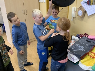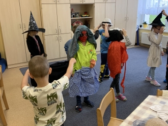 Potom jsme se pustili do další výzvy: proměnit se sami ve strašidla! Oblékli jsme si kostýmy, doplnili je maskami a vytvořili strašidelnou přehlídku. Smích a radost ukázaly, že strašidla nejsou důvodem k obavám, ale skvělou příležitostí k tvořivosti a společné zábavě.