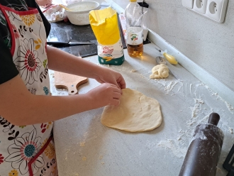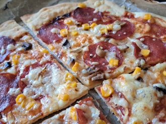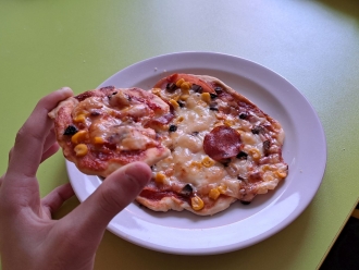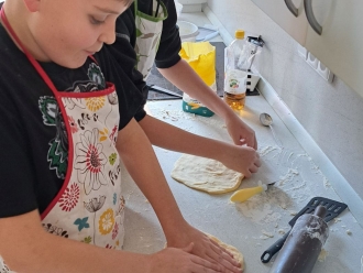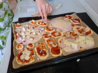 Druhým listopadovým tématem byla všemi oblíbená pizza. Pekli jsme z nekynutého těsta a na pizze nechyběly ingredience jako sýr, šunka, salám, kukuřice, žampiony ani kečup.