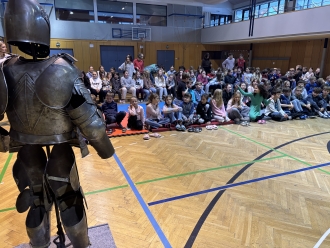 Opět k nám zavítala umělecká skupina Pernštejni. Ve svém historicko zábavném programu se tentokrát zaměřila na husity a život v tomto období. Kromě toho, že nás jejich představení pobavilo, jsme se i něčemu přiučili. Byla to vydařená akce.
