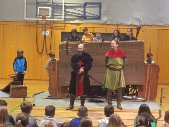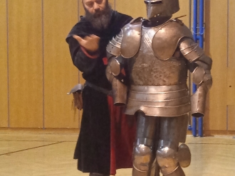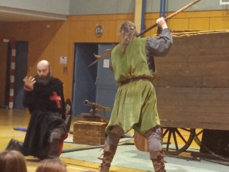 Ve středu 26.11. si pro nás přichystali členové skupiny "Pernštejni" poutavé vystoupení o době husitské. Seznámili žáky s životem a výzbrojí rytířů a husitů. Dětem se líbily ukázky šermu, mohly si prohlédnout historické zbraně i husitský vůz. ![]()