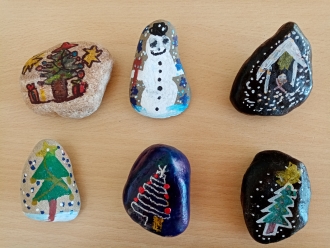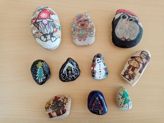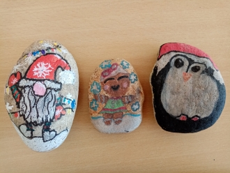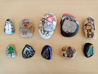 Předvánoční výtvarná soutěž Malovaný vánoční kamínek byla organizována IKS a odborem kultury MěÚ Třeboň. Účast v soutěži nebyla pro žáky povinná, zapojili se do ní jen ti, kteří měli sami zájem doma si vyzkoušet něco nového. Doporučenou technikou byla kresba speciálními fixy. V naší třídě se nakonec sešlo 13 kamínků od 8 soutěžících (Anička, Magda, Terka, Veronika U., Veronika Z., Liudmyla, Michal a Ondra). Do soutěže dál postupovalo jen 10 nejhezčích kamínků z každé třídy. Ve dnech 14. - 16. listopadu probíhalo hlasování na Facebooku, vyhodnocení soutěže se uskutečnilo v rámci akce Třeboň plná andělů 29. listopadu na třeboňském Masarykově náměstí.