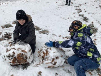 Letošní první sníh nás velice potěšil, tak jako všechny děti.