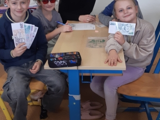 Listopadový Den finanční gramotnosti byl zaměřen jako obvykle na peníze - co jsou peníze, co za ně lze koupit, proč je potřebujeme, kde je bereme... Ve skupinách jsme pracovali s příjmy (zahrnujícími pravidelné měsíční kapesné) a s výdaji našeho imaginárního kamaráda. Tento vskutku nelehký úkol byl v závěru vyvážen odlehčenou běhací hrou, jejímž cílem bylo vyluštit křížovku a dozvědět se tak něco o současných bankovkách.