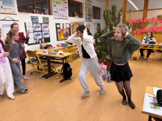 Sice nás bylo málo, protože plno dětí bylo nemocných, ale předvánoční rozloučení v naší třídě jsme si nenechali ujít. Holky předvedly scénku o Grinchovi. Kluci se dobře bavili a radost z dárků byla obrovská.