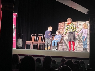 V den pololetního vysvědčení jsme šli do divadla na představení "Trapas nepřežiju! aneb Ten řízek nezvedej."