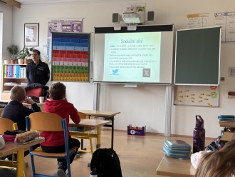O riziku sociálních sítí nám přednášel por. Bc. Milan Bajcura, tiskový mluvčí Policie ČR.