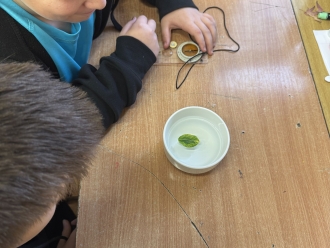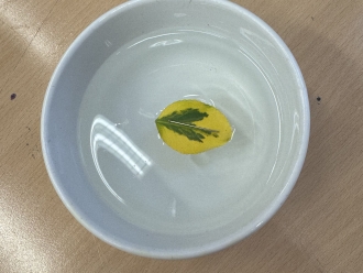 Lístek se opatrně vloží na vodu, kde se začne volně otáčet.