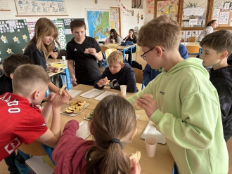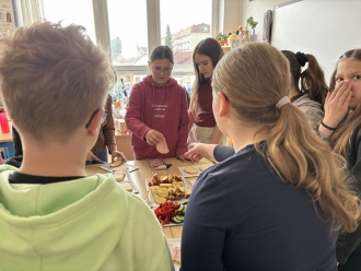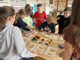 Součástí dne finanční gramotnosti byla příprava občerstvení na narozeninovou oslavu. U vybraných potravin jsme nejdříve odhadovali ceny, v obchodě jsme pak hledali ty nejlevnější a nejdražší. Z nakoupených potravin jsme pak vyrobili chlebíčky a užili si příjemné posezení. Toto byl nejlepší den finanční gramotnosti ze všech.