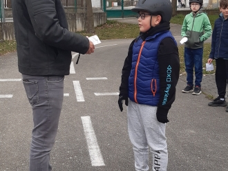 Žáci zakončili dopravní kurz zahájený v podzimním termínu absolvováním závěrečného přezkoušení. Po teoretickém zopakování pravidel silničního provozu a po ověření jejich znalostí písemným testem zbývala již jen praktická jízda na dopravním hřišti. Za dohledu učitele Autoškoly Ille s.r.o. měli žáci předvést bezchybnou jízdu simulující dopravní situace v běžném silničním provozu. V závěru tohoto náročného dne byla předána řidičská oprávnění pro cyklisty těm žákům, kteří z větší části splnili požadavky v obou kategoriích.